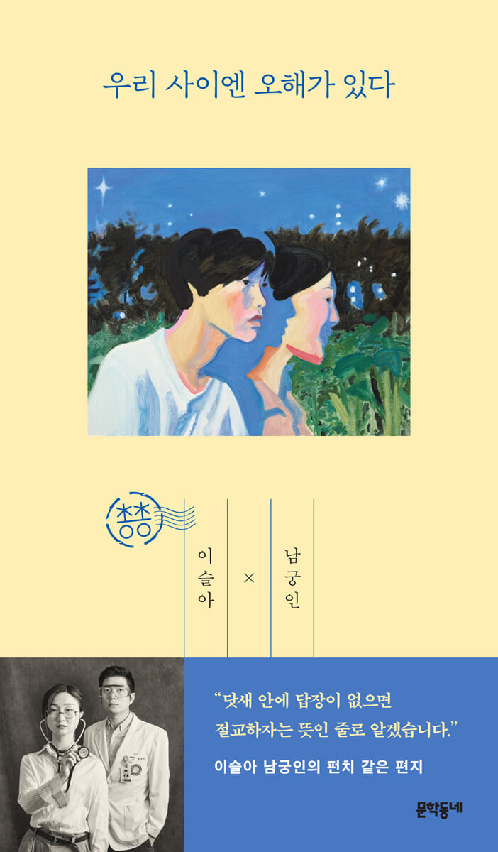 인생을 살면서 수도 없이 범하고 범해지는 오해를 이 둘처럼 글을 통해 해소될 수 있다면 세상은 아름다워질까. 반대로 나처럼 오해입니다라고 차마 말할 수 없는 편지를 보내는 이처럼, 닿을 수 없는 해명은 또 얼마나 많은가. 그리하여 이슬아와 남궁인은 결국 구어가 아닌 문어로서 서로의 오해를 풀게 되었을까. 그들의 글을 읽는 나는 그 들에게 갖고 있던 오해가 풀린 것만은 분명한데.