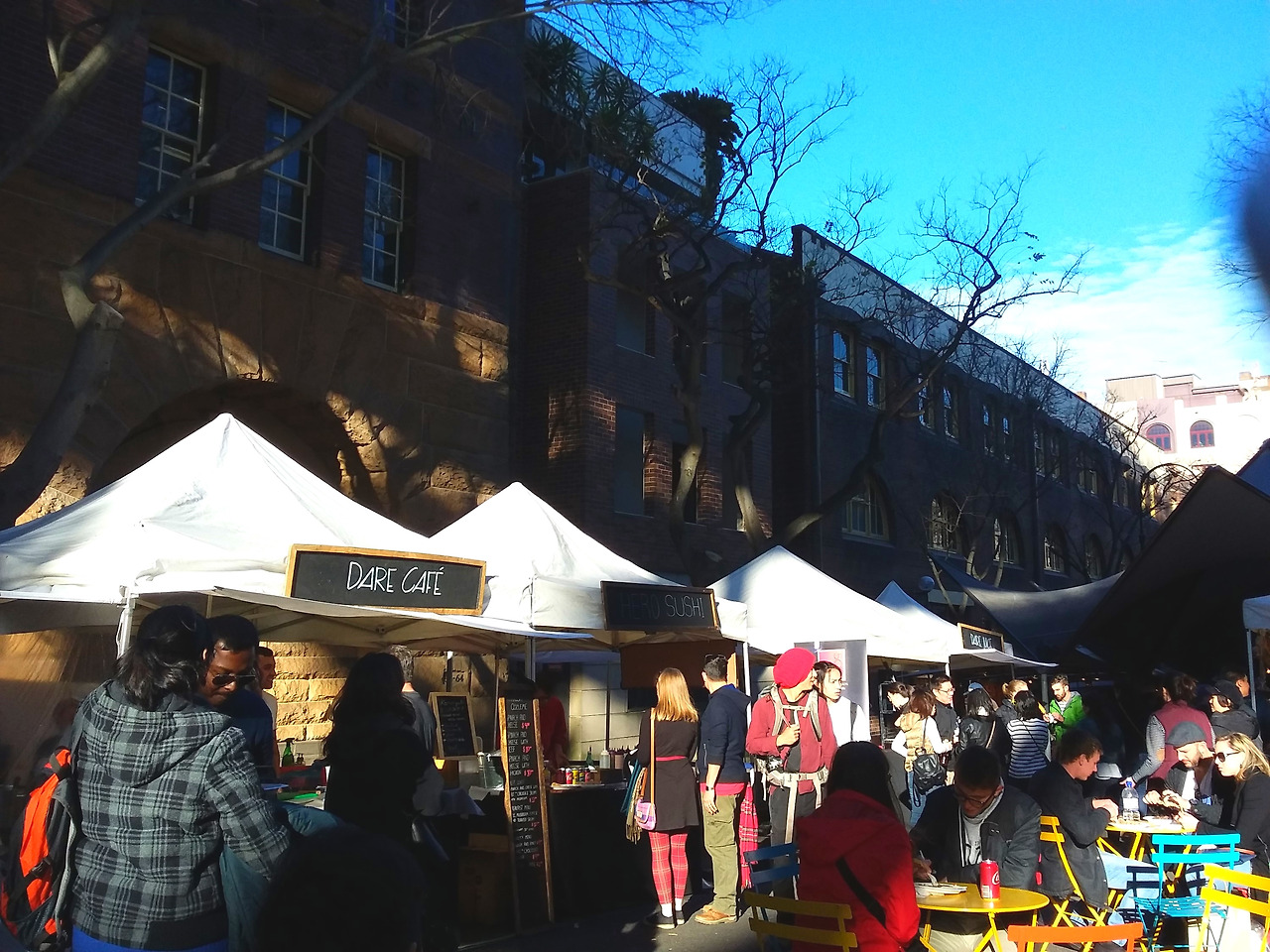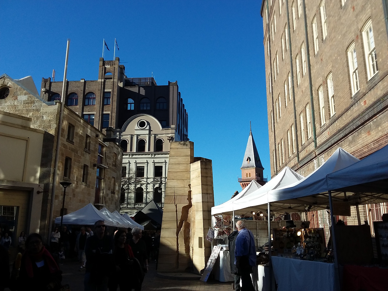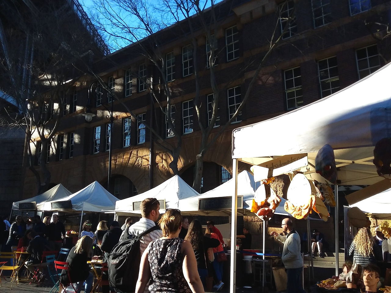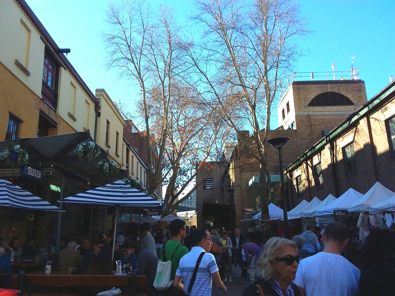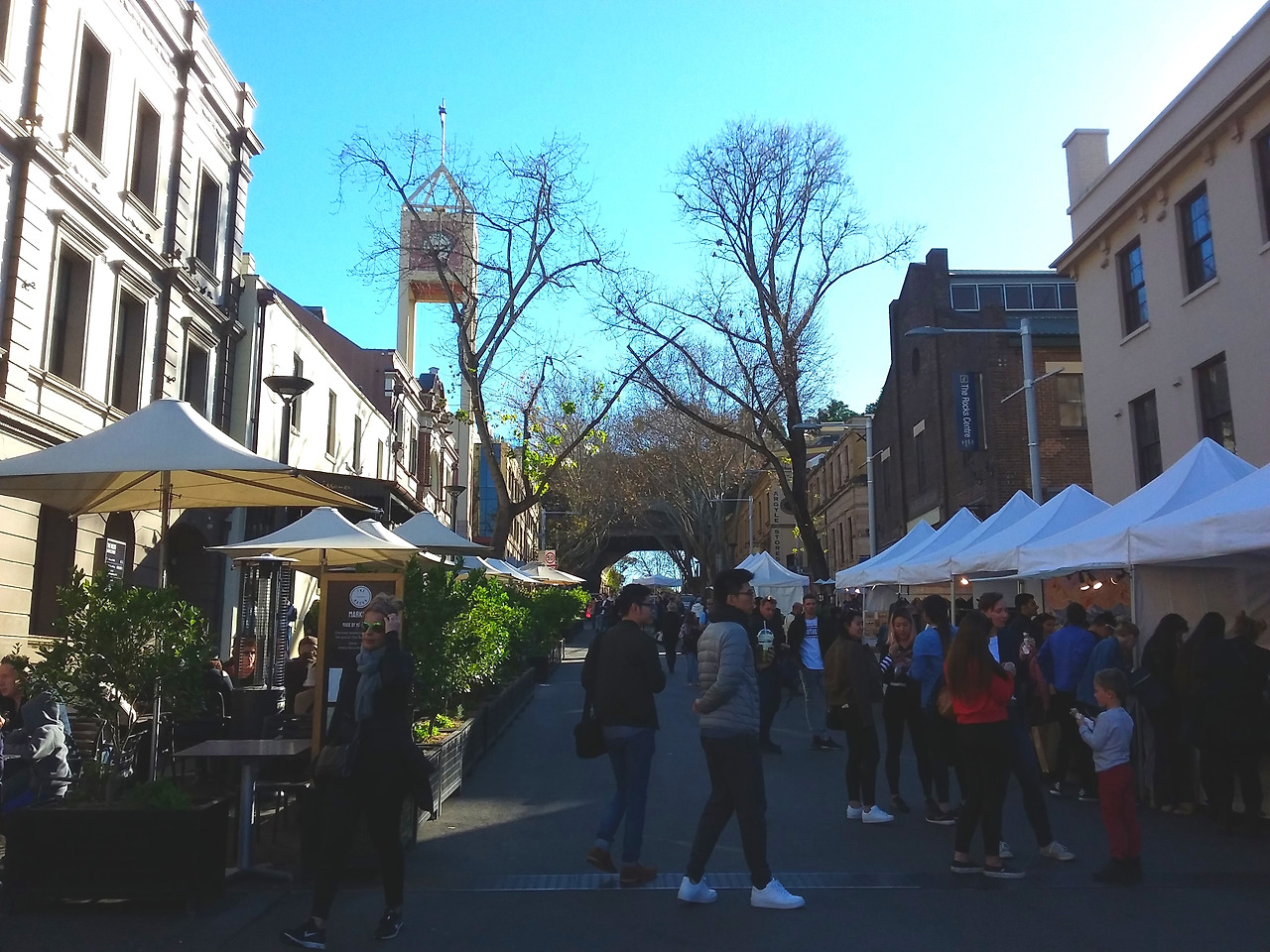 그러한 연유로 이 날도 평소 벼르기만 했던 록스 마켓을 찾았다. The Rocks는 영국에서 온 이주민이 최초로 정착한 역사 때문인지 마치 유럽의 분위기와도 비슷하였는데, 위로 길게 뻗은 언덕 밑으로는 서큘러 퀘이가 한눈에 보였고, 그 위 쪽으로는 작은 부스들이 줄지어 서있어 마켓의 시작을 알렸다. 나는 그 광경이 너무도 예쁜 나머지 마켓 입구에서 한참을 서성거리다가 이내 올라갔는데, 그 순간 나는 내가 내일 다시 출근해야 하는 생활자임을 잠시 잊고 이쁜 옷에 가방을 멘 여행자로 온 듯한 착각마저 들었다. 언덕 위쪽으로 조금만 더 올라가다 보니 시계탑을 기준으로 골목길을 통과하자 다른 부스들도 줄지어 보였는데 마켓 입구보다 더욱 북적거렸던 것이 마치 재래시장에 온 듯한 기분마저 들었다. 길거리 공연으로 마켓 안에는 늘 음악이 울러 펴졌고 관광객들 사이에서 나는 오늘 처음 시드니에 도착한 사람처럼 오랜만에 설레어 연신 눈으로, 사진으로 풍경을 담고자 애썼다.