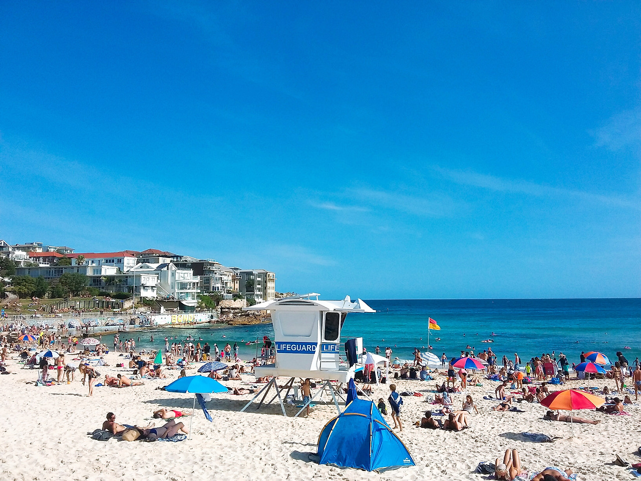 그 후 선글라스 등을 파는 노점상들을 구경하다가 어디를 갈지 고민하던 나는 이내 네이버가 아닌 구글맵에서 행선지를 찾기로 했다. 종종 나는 여행지에서 구글 지도에 표시되어있는 카메라 아이콘을 주의 깊게 보곤 하였는데, 아이콘이 표시된 곳들은 유명하거나 혹은 유명하지 않더라도 그 근처를 여행 중 한번 즈음 들려도 후회 없을 만큼 좋은 곳들이었다. 그렇게 해안산책로인 Coastal Walk를 찾아 길을 걸었고, 그곳으로 가던 중 나는 본다이 비치가 왜 유명 해졌는가에 대해 공감할 수밖에 없었다.