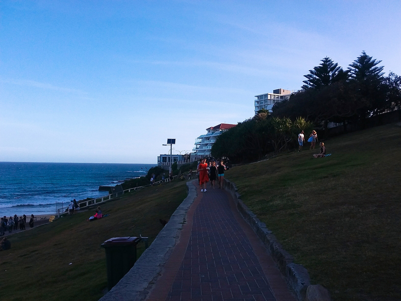 Coastal Walk로 가는 중에 본다이 파크 앞으로 해변이 펼쳐져 있는데 바다 앞 언덕이라는 이색적인 풍경이 묘하게 아름다웠다. 대개 공원 안에 높은 언덕 밑으로는 그 도시의 전경이 한눈에 펼쳐졌는데 전경 대신 푸른 바다가 보이니 그 모습이 더 아름다워 보이기도 하였고, 해수욕장에서 바다를 바라보는 것보다 선선한 바람과 풀냄새를 맡으며 이곳에서 휴식을 취하는 편이 본다이 비치를 즐기기에는 더할 나위 없이 이로워 보였다. 어느덧 어두워지는 하늘에도 불구하고 나는 본다이 아이스버그스 수영장을 지나 브론테 비치로 향하는 Coastal Walk의 초입까지 걸어갔는데, 그곳은 시드니를 떠나기 전 운동화를 챙겨 신고 날이 좋은 날 꼭 다시 오리라며 다짐하게 되는 풍경이었다.