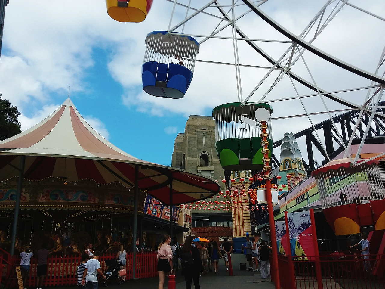 생일에 루나파크를 가게 된 것은 순전히 내 의견이었는데, 워낙 아기자기한 것을 좋아하고 놀이공원을 좋아하는지라 나에게 있어 ‘루나파크’는 시드니를 떠나기 전에 꼭 한 번은 가보아야 할 관광지 중 하나였다. 루나파크는 시드니와 멜버른의 유명 관광지로 뽑히는 명성과는 다르게 사실 호불호가 꽤나 강한 관광지 중 하나이다. 한국의 롯데월드 내지는 에버랜드를 상상하고 온 사람들이라면 어린이대공원보다도 적은 놀이기구 수와 그 규모에 크게 실망한 나머지 주위 사람들에게 ‘정말 볼 것 없더라.’를 전할 것이며, 큰 기대 없이 그저 놀이동산이 주는 동심과 그 밝고 명랑한 분위기를 좋아하는 사람들이라면 만족하며 구경할만한 그런 곳이랄까. 그러니까, 쉽게 말하자면 루나파크는 에버랜드보다도 용마랜드에 가깝다.