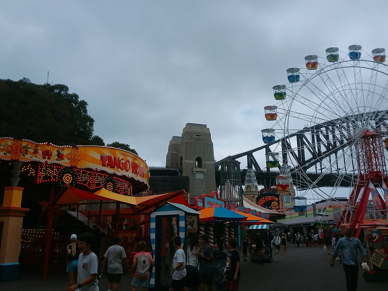 애당초 나 역시 그런 말을 들었던지라 별 기대 없이 지안이에게 시드니를 떠나기 전 가볼 만한 곳은 다 가보아야 하지 않겠냐며 권하였고 그렇게 우리는 다소 흐린 날씨에도 불구하고 루나파크로 향하게 되었다. 루나파크로 가는 길목에서 우리는 운 좋게 주말 마켓을 구경하게 되었고 그곳에서 간단한 요깃거리와 눈요기를 한 뒤에 루나파크로 입성하였다.