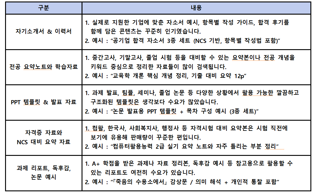 사이트에 올라온 인기 자료들을 분석해 보니,