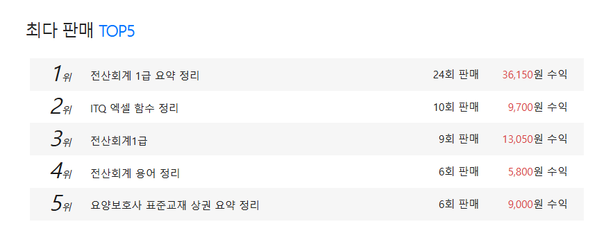 그래서 그때부터 잘 팔리는 자료들의 제목과