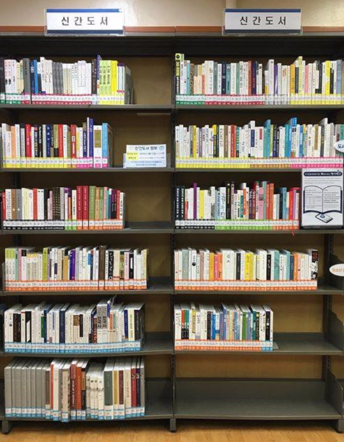 중앙도서관에 들어가면 북카페를 지나 책이 잔뜩 꽂혀있는 서가를 만날 수 있다. 문을 열고 들어가면 쇼핑몰에서나 볼 수 있는 도난을 방지하는 시스템이 설치되어 있다. 그곳을 지나면 바로 '신간 코너'가 있다.