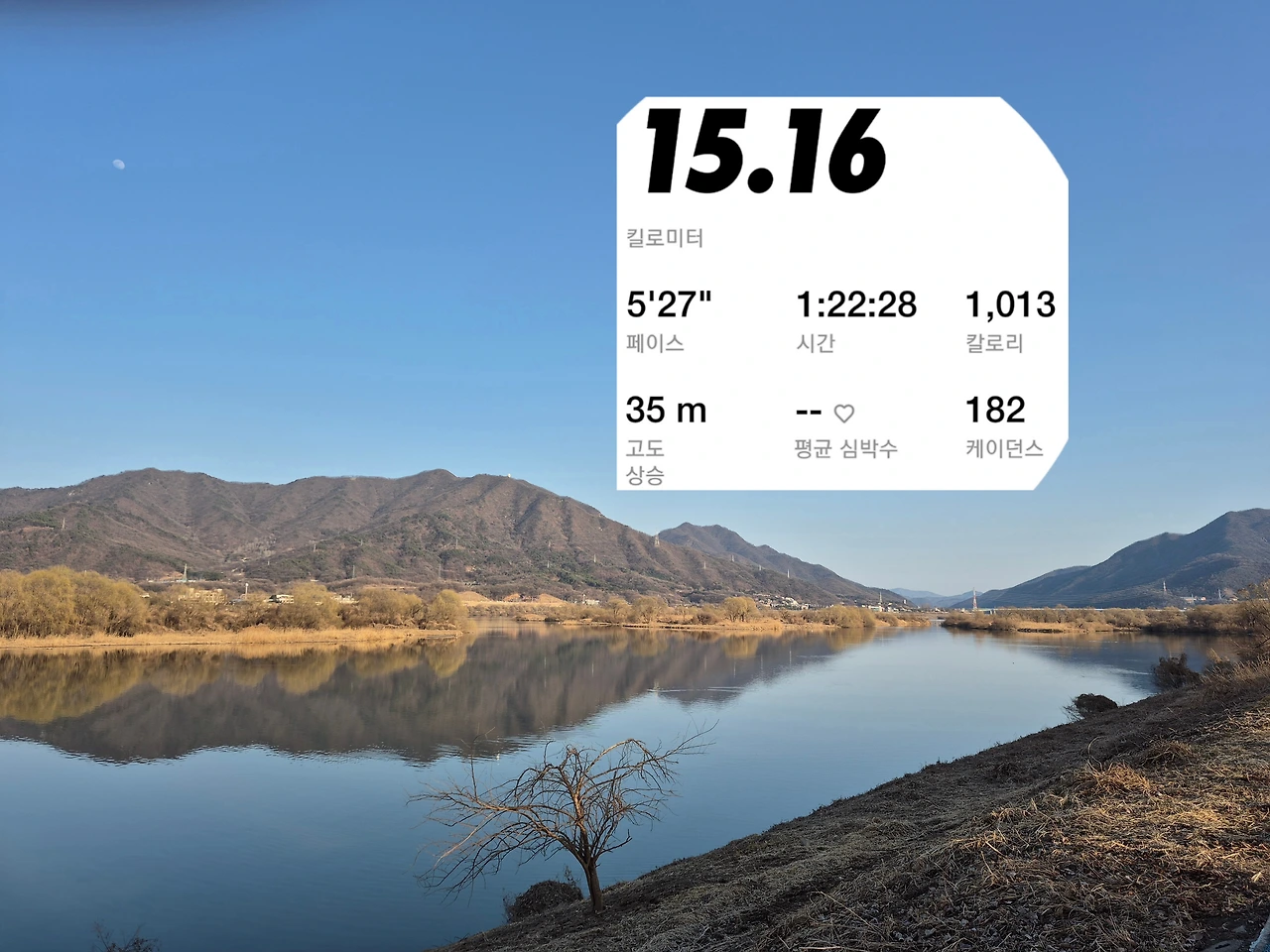 났다. 노래 듣고 달리면서 집 근처 강을 바라보는데