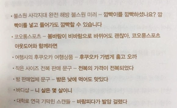 자기 제품의 결점이나 단점을 스스로 공개하는 바보가 되지 말자.