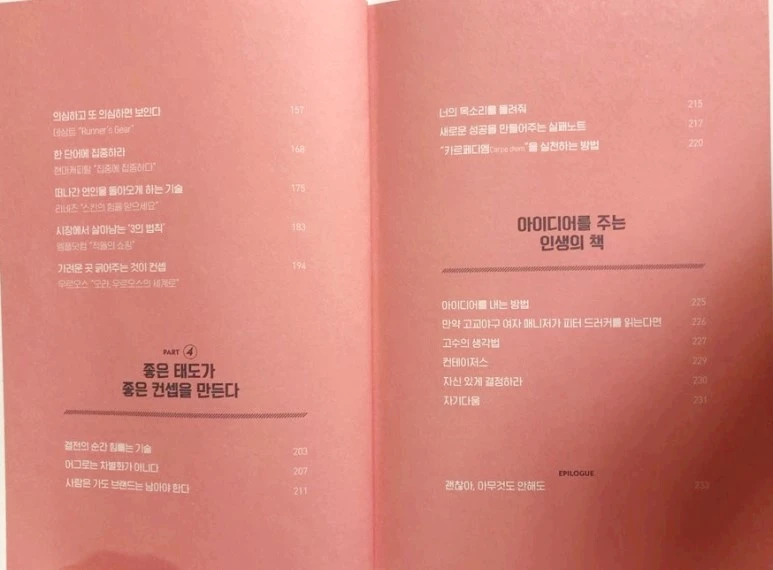 목차는 총 4Part로 구성되어있고, 부록으로 아이디어를 주는 인생책을 소개해주고 있어요.