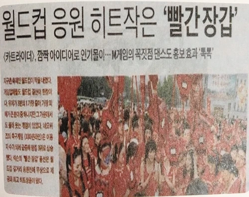 각 종 TV, 신문, 인터넷에 이슈화 되었고, 연예인들도 빨간장갑을 끼고 응원하는 장면이 자주 보도되면서 별도의 홍보비가 들지 않고 마케팅이 저절로 됨.