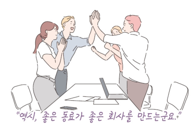 잠자는 시간을 제외하면 하루의 절반 이상을 회사에서 보내는 우리. 회사 생활이 힘들거나 재미없다면 어떨까요? 많은 기업들이 구성원의 행복을 위해 좋은 복지 혜택을 제안합니다. ‘일하기 좋은 회사’, 나아가 ‘일하고 싶은 회사’를 만들어야 능력 있는 구성원을 충원할 수 있기 때문이죠. 하지만, 아시다시피 어떤 복지 혜택보다 중요한 것이 ‘좋은 동료의 존재 유무’ 입니다.