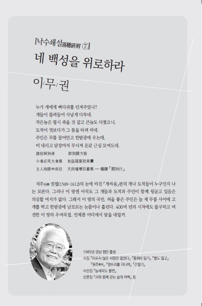 이 나이에 서럽지 않은 게 무엇이 있으랴