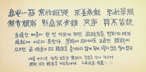 우연히 예전에 메모해 놓은 글을 보는데 세종대왕 말씀이 있었다. 나에게 오랫동안 무기력했던 시간이 있었다. 그때 이 글귀를 보고 마음에 와 닿아서 키핑을 해놨었는데.. 지금 다시 읽어봐도 좋다. ^^