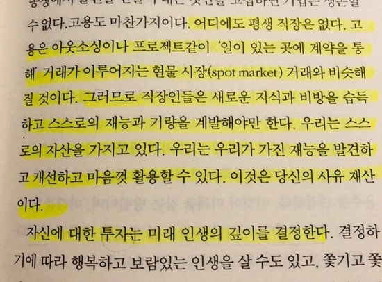 지금 우리가 살아가고 있는, 앞으로 살아갈 시대의 현실을 정확하게 꼬집어 주어서 개인적으로 많은 공감을 받았고 앞으로 어떻게 살아가야 할지 많은 고민을 하게 되었다.