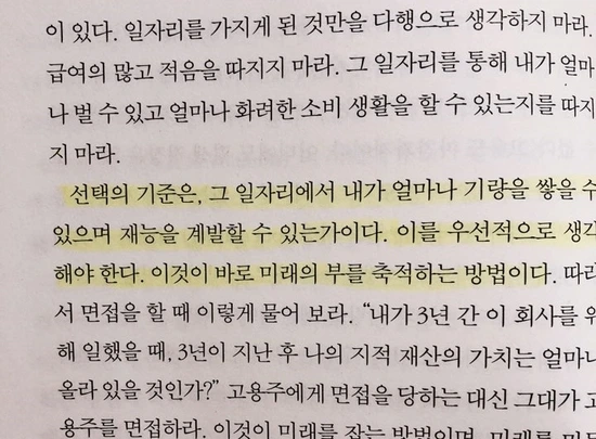 선택한 그 일에서 내가 얼마나 배울 수 있고, 나를 업그레이드할 수 있는지가 우선이 되어야 한다.