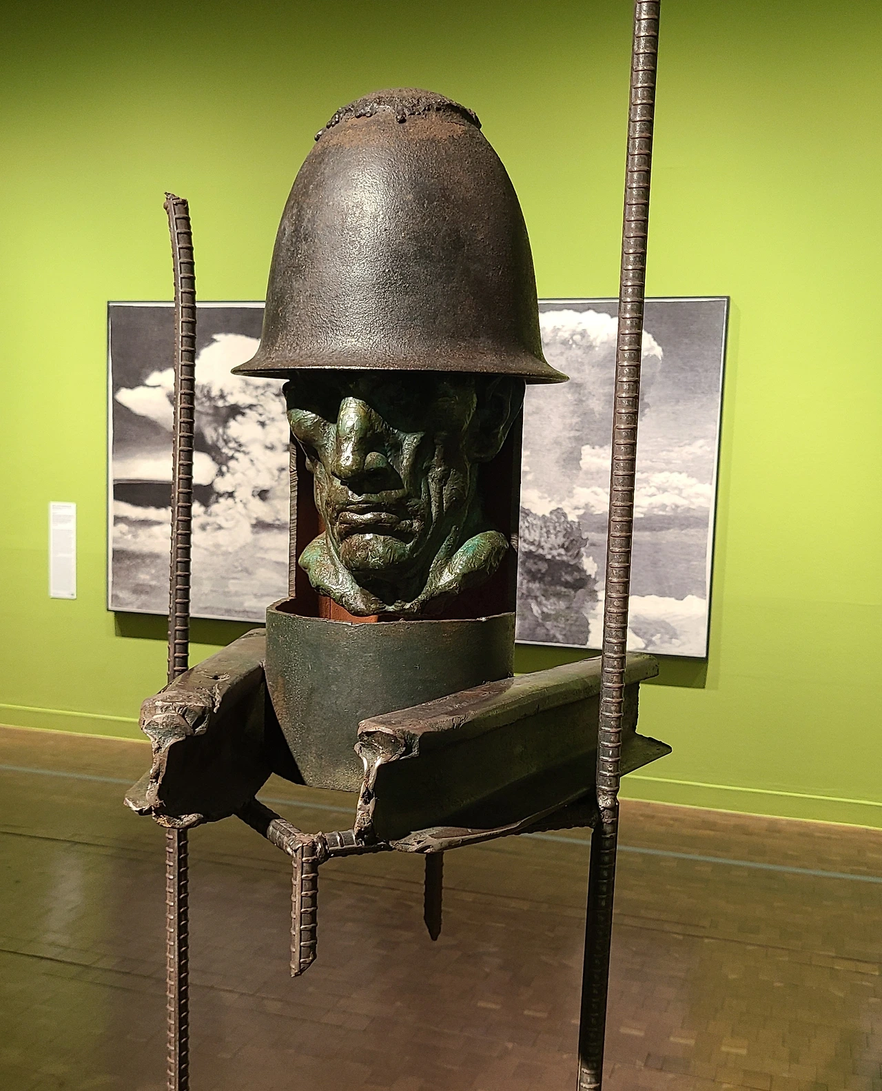 이 작품은 철근 구조 안에 군모를 쓴 남성의 두상이 갇혀있는 모습을 표현했다. 작품 속에 머리만 남은 남성의 무기력한 표정과 움푹 파인 얼굴과 깊고 작은 주름들에서 전쟁의 아픔을 느낄 수 있었다.