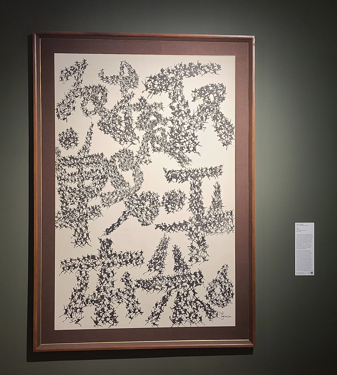 이 작품은 문자추상과 결합된 <군상> 시리즈 중 하나로 무수히 많은 사람의 형상을 군집되게끔 '그려서' 문자를 쓰는 방식으로 제작되었다고 한다.