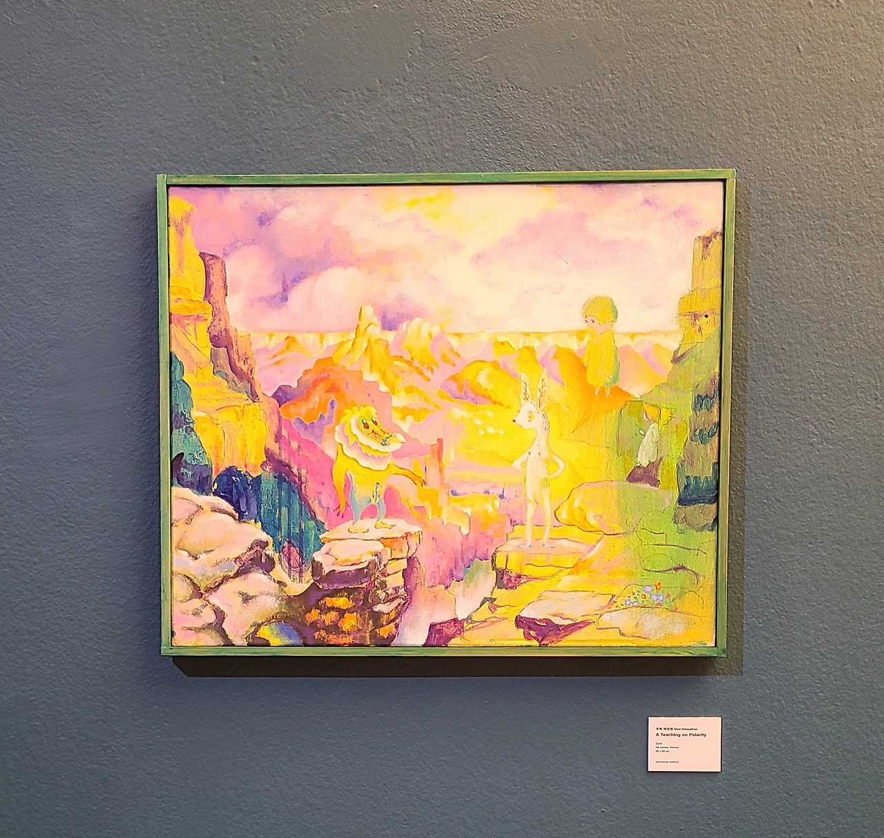 따뜻한 파스텔 계열의 배경이 작품 전체를 이루고 색이 부드럽게 번지며 명확한 경계 없이 융합되어 대립이 아닌 공존을 의미한다고 한다.