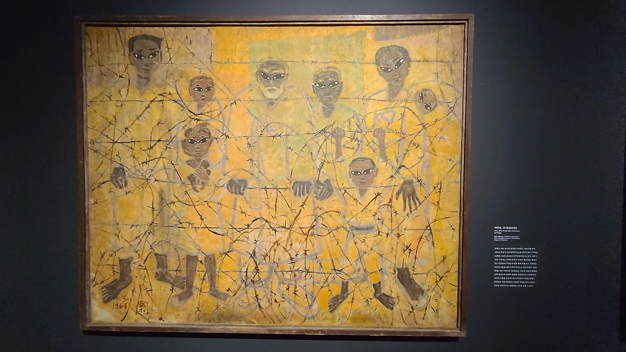 이번 전시실의 작품 속 인물들은 어디를 보는지 무슨 생각을 하는지 짐작하기 어려운 무표정이거나 단순화되어 있어 당시 피폐하고 고달픈 삶의 무게를 짐작하게 했다.