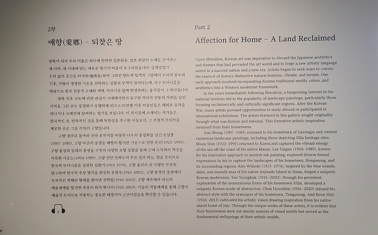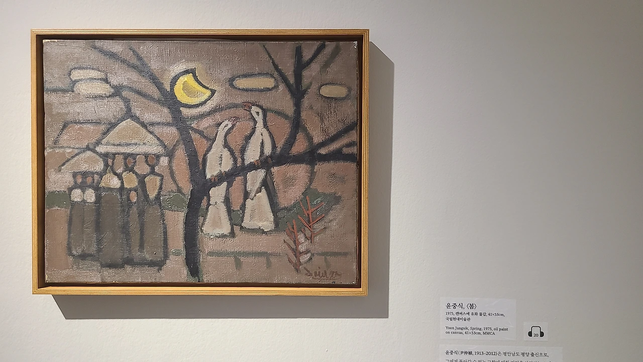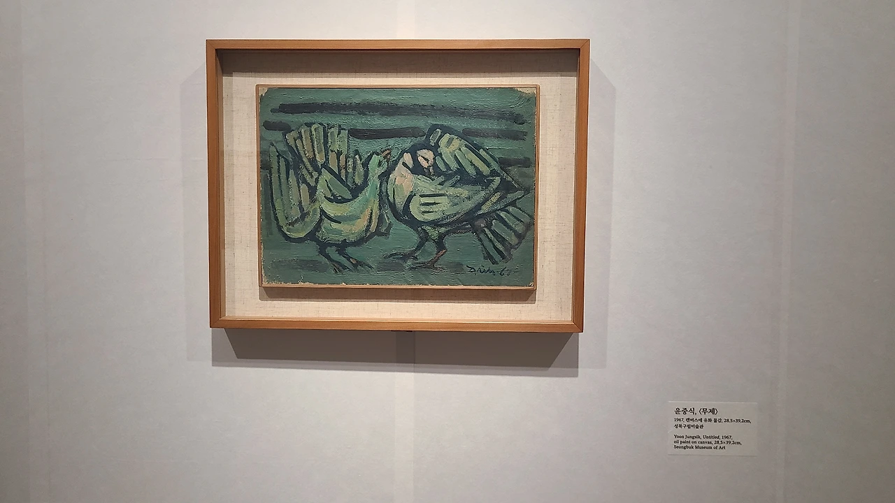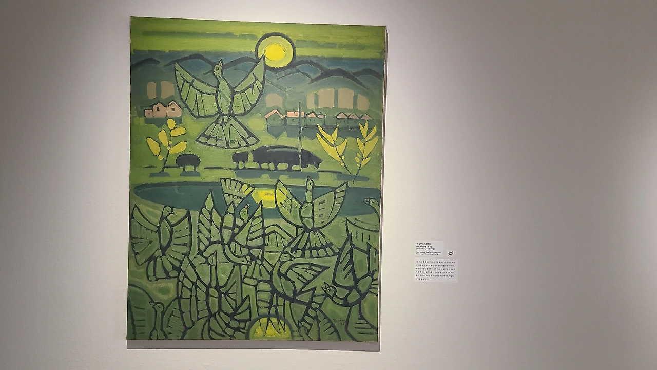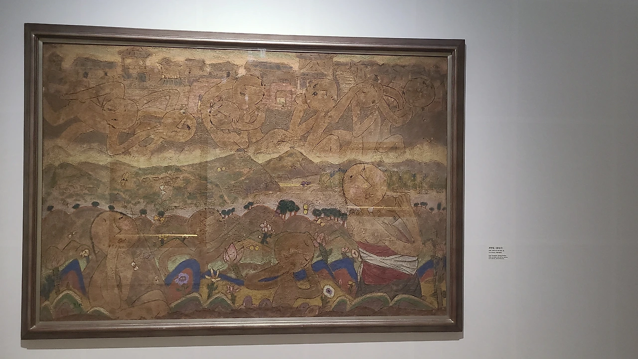 어두운 화면 속 주홍색 잎이 강렬했던 윤중식의 <고목>과 꽃이 만발하고 나비가 날아다니는 동산에서 아이를 업은 여인과 천진난만하게 어울려 노는 아이들의 모습을 그린 최영림의 <봄동산>이 가장 기억에 남는다. 작품 속 인물들은 대부분 고개를 숙이고 있거나 표정이 없는 형태가 많았는데 최영림의 작품 속 인물은 표정을 가지고 있어 생명력을 더했다. 작품 속 아이들의 모습은 전쟁의 피폐함에서 벗어나 아이들의 해맑은 웃음을 되찾아주고 싶은 화가의 마음을 담아 표현한 듯했다. 강한 필선이 살아있는 느낌을 주는 이중섭의 작품도 직접 볼 수 있어서 뜻깊은 시간이었다.