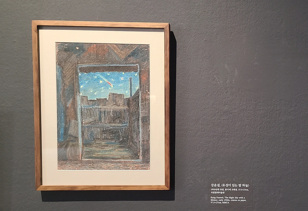 강운섭의 <유성이 있는 밤 하늘>은 폐허 속에서도 별빛만이 희망이었던 시대의 정서를 상징적으로 표현한 작품이라고 한다. 종이에 크레용으로 그린 작품으로 고흐의 <별이 빛나는 밤>의 밤 하늘을 연상시키기도 했다.