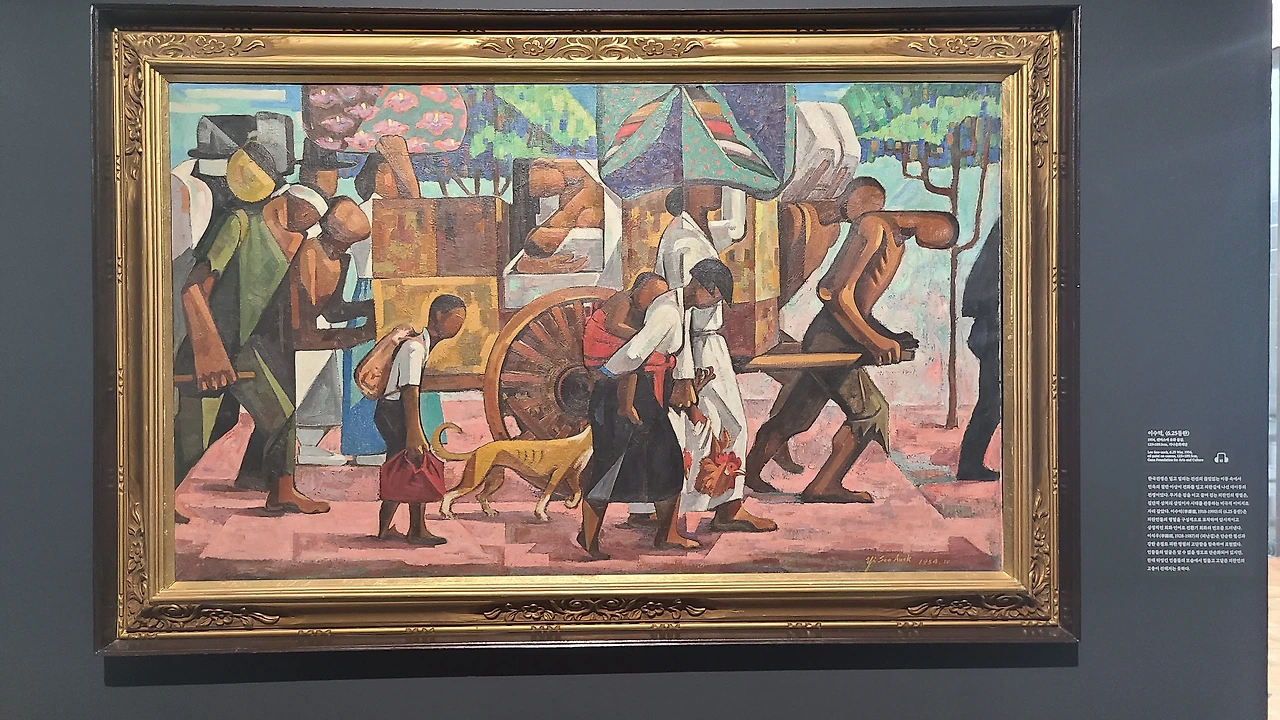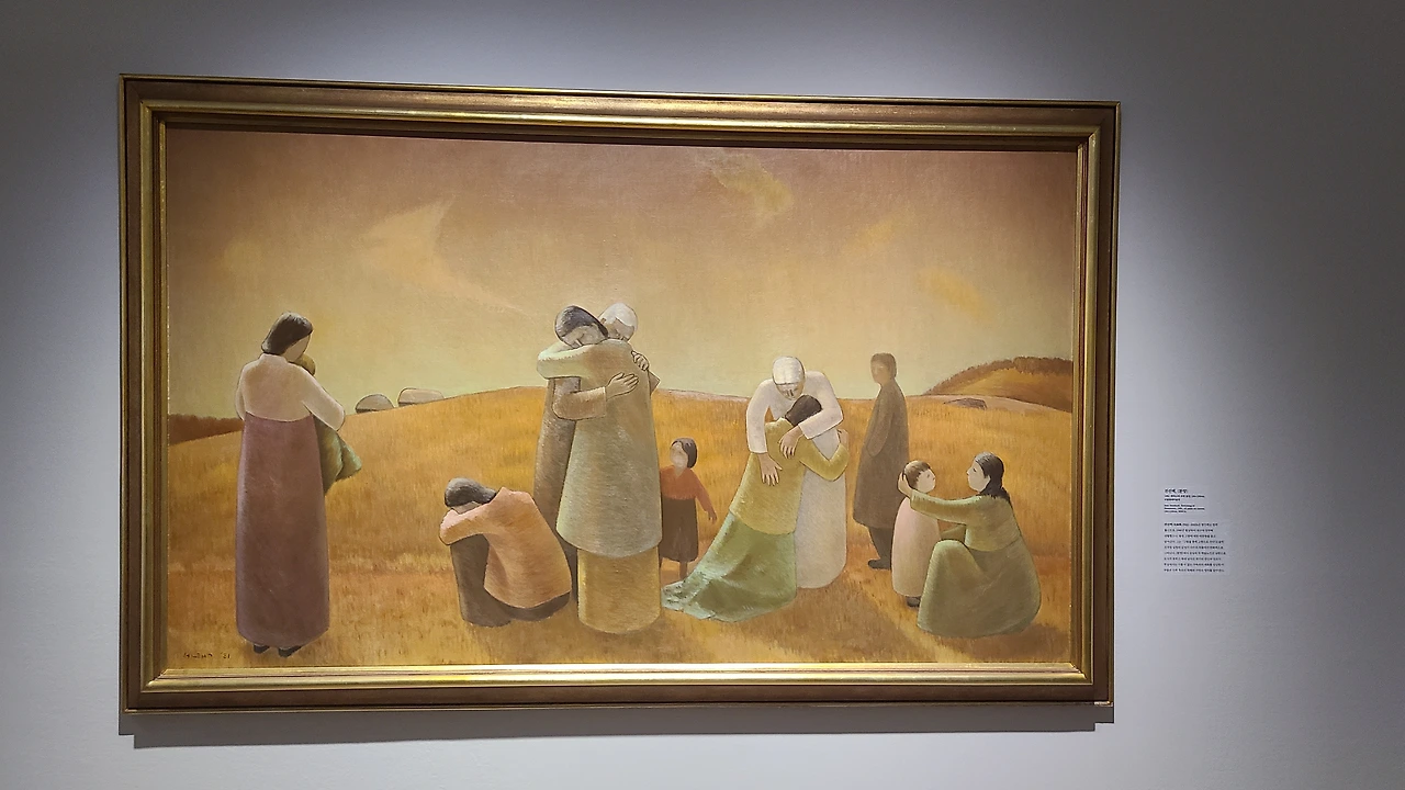 이수억의 <6.25 동란>은 피란 행렬의 고단함을 표현한 작품으로 인물들의 얼굴은 알 수 없을 정도로 단순화되어 있다. 이러한 인물들의 모습에서 당시 힘들고 고달픈 피란민의 고충을 느낄 수 있었다.