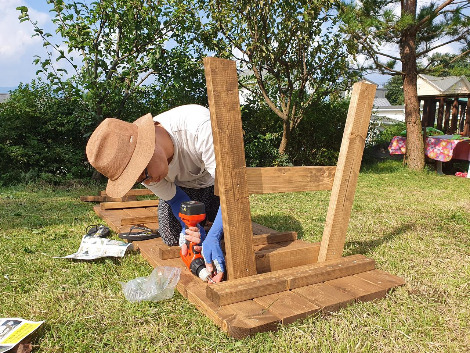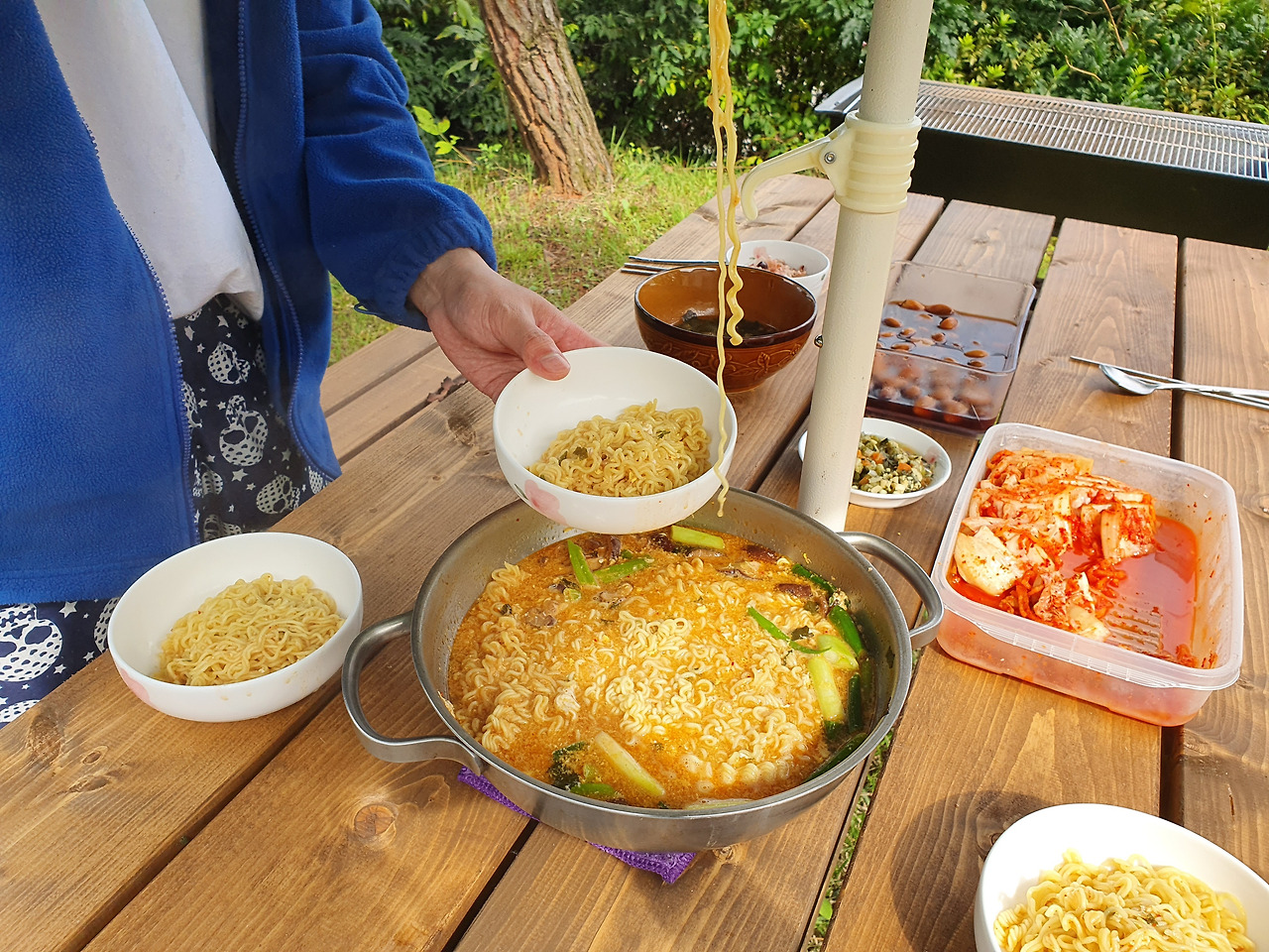 이사 오자마자 마을을 둘러보니 집집마다 야외 테이블과 파라솔이 있었다. 역시 전원생활의 꽃은 바비큐인가! 그 길로 바로 펜션 테이블과 바비큐 그릴을 검색했다. 앞으로 완제품 아닌 건 사지도 말라며 흥건한 땀과 함께 테이블을 조립하는 남편을 보며, 나는 기필코 뽕을 뽑으리라 다짐했다. 그 후 주말 저녁이면 어김없이 숯불을 피우고 끼니가 될만한 것들은 애써서 마당에 나가 먹었다. 전원생활을 즐기는 사람이라면 응당 암묵적으로 지켜야 하는 규칙인 것처럼. 그렇게 두 달을 애쓰는 동안 다른 집 식구들이 마당에 나와서 식사하는 건 한 번도 보지 못했다. 프로의 식사란 모름지기 쾌적한 실내에서 하는 것이었다.