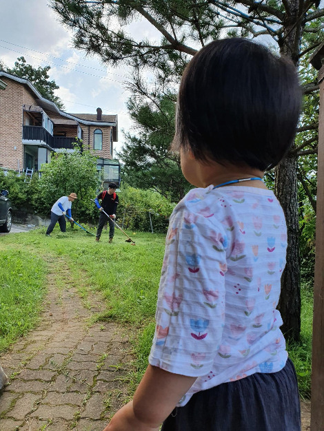 함께 사는 남동생이 어느 날 식탁에서 나지막이 이야기했다. 이등병 때 이후로 이렇게 열심히 살아본 적이 없다고. 그도 그럴 것이 전원생활은 어서 일어나라고 보채는 일들 뿐이다. 이때까지 나는 풀들의 무서운 생장력을 알지 못했다. 비가 한번 오고 나면 그들이 얼마나 더 빨리 자라는지. 거미는 꼭 폐교나 폐가에만 집을 짓는 게 아니란 것도. 장마철 습기를 머금은 나무 문들은 빵빵하게 부풀어 제대로 닫히지 않는다는 것도 여짓 모르고 살았다. 그러니 잔디를 깎고, 씨앗을 뿌린 적 없는 버섯을 뽑고, 거미로부터 영역을 침범당하지 않으려면 일어나야만 하는 것이다. 자연스레 힘쓰는 요령이 없고, 엉덩이도 무거운 나 같은 사람은 이곳에서 잉여가 된다. 엄마는 암환자라는 방패라도 있지, 나는 애 본다는 핑계마저 없었으면 정말 큰일 날 뻔했다.