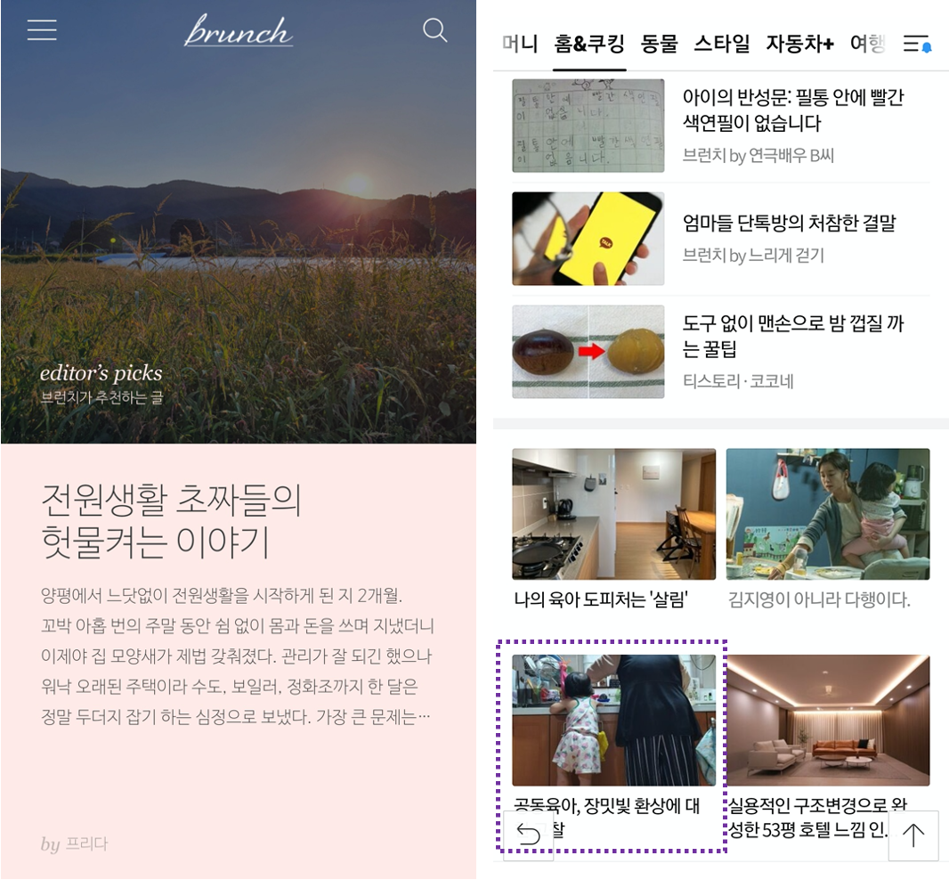 브런치와 daum에 소개된 두 편의 글. 유혹적인 해프닝이었다.