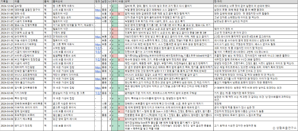 식사법 별 시간효율은 완조리식품의 압승이다. 하지만 신선하고 좋아하는 재료를 양껏 먹을 수 있는 것은 역시 집밥이다. 아이들이 어려서 간과 재료 품질도 신경 쓰인다. 하지만 살림 시간은 최소화하고 싶다!