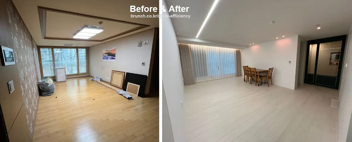 결국 30평대 대신, 이 24평 집을 사고, 그 차액으로 전체 인테리어를 하기로 했다. 다행히 짐이 적은 편이라 결심이 쉬웠다. 집이 작아지면 관리할 면적이 줄어드는 것도 워킹맘에겐 매력적이었다.