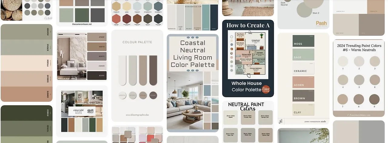 타일, 필름, 도배, 페인트, 마루, 가구 전에 정하자. Pinterest에서 'house color palettes'를 검색해서 취향에 맞는 색조합을 찾으면 된다. 못 정하겠거나 잘 모르겠으면 벽지나 필름은 흰색, 욕실은 밝은 색, 현관은 먼지색이 무난하다. 가구, 천, 소품으로 색을 더할 수 있기 때문이다.