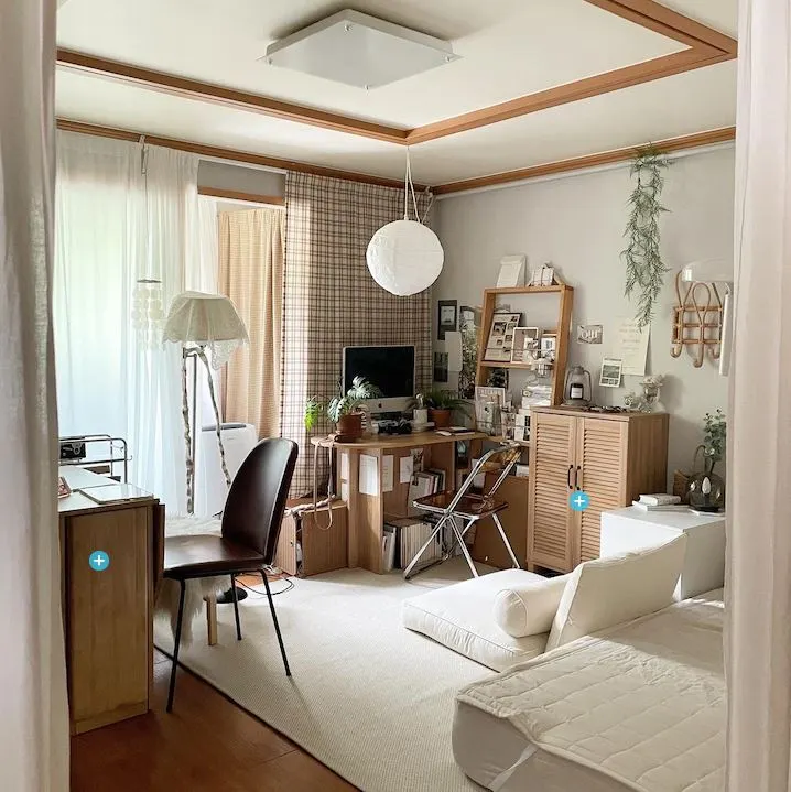 목공 전에 정하자. 벽과 천장, 바닥선이 직각으로 딱 떨어져야 하는가? 벽지 들뜬 그림자가 눈에 보이는가? 무몰딩이 좋은가? 시각적 완벽함을 추구할수록 시공비는 올라간다. 아래 사진의 집에 살아도 만족할 것 같다면, 목공비를 가구나 정리 컨설턴트에게 쓰는 게 나을 수도 있다.