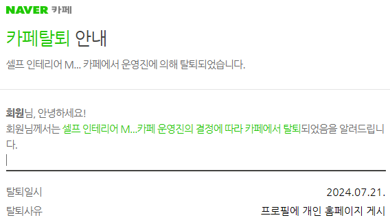 메일함에 카페 탈퇴사유가 적혀 있었다.