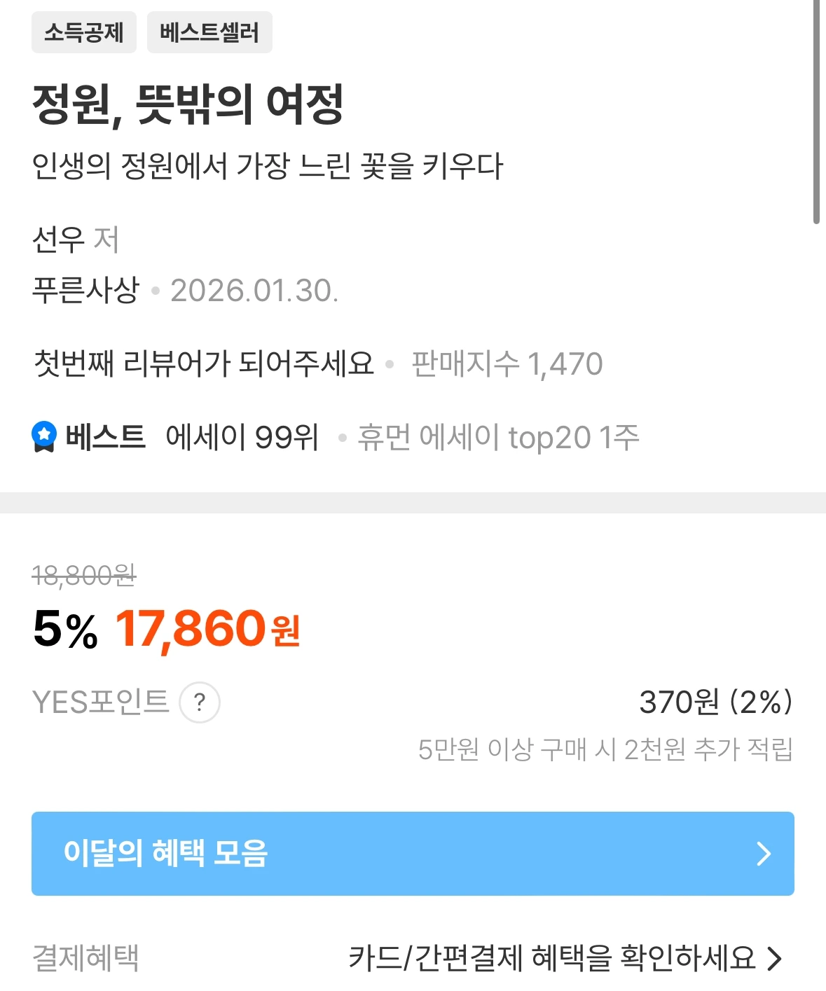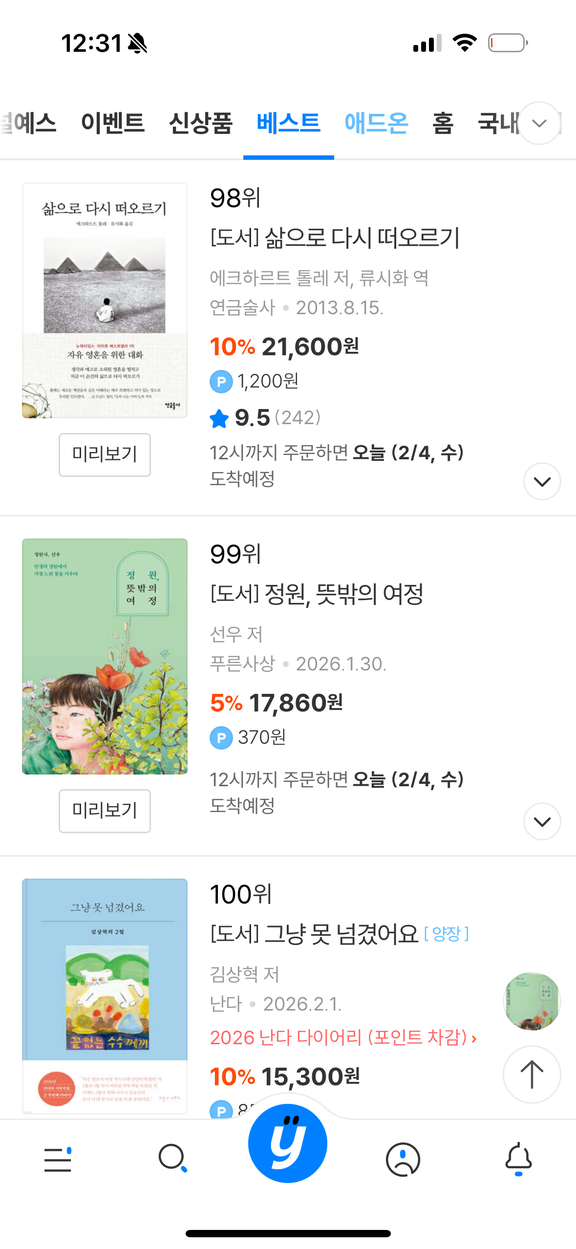 어제 2월 4위 아주 잠깐이지만 yes24 에세이 전체 종합 99위가 되었습니다. 감사합니다. 힘들면 힘든 대로 정직하게 쓰겠습니다. 힘내겠습니다. 고맙습니다. 사실 실감이 잘 안 나요. 교보문고와 알라딘에 남겨주신 후기에 깊이 감동했습니다. 고맙습니다.