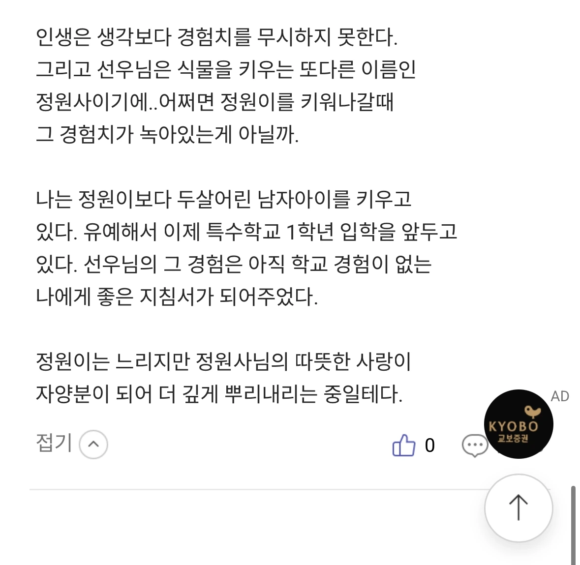 그래, 나의 흔적을 지우자. 원고를 열고 나에 대한 이야기를 하나하나 지웠다. 이 책의 주인공은 내가 아니었으니까. 정원이에게 다시 초점을 맞추자. 한 챕터를 모두 지우고 리딩맘에 있던 이야기를 쓰기 시작했다. 아이에 대한 이야기를 더 나누자. 그 리딩맘의 기억은 정말 특별했다. 나는 정원과 식물을 돌보고 기록하는 사람으로 남아 있자. 정원사로.