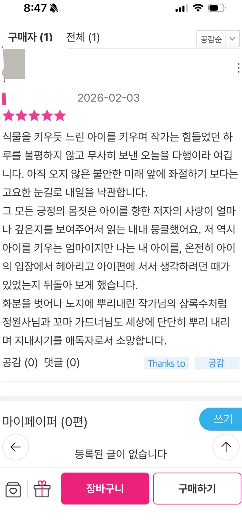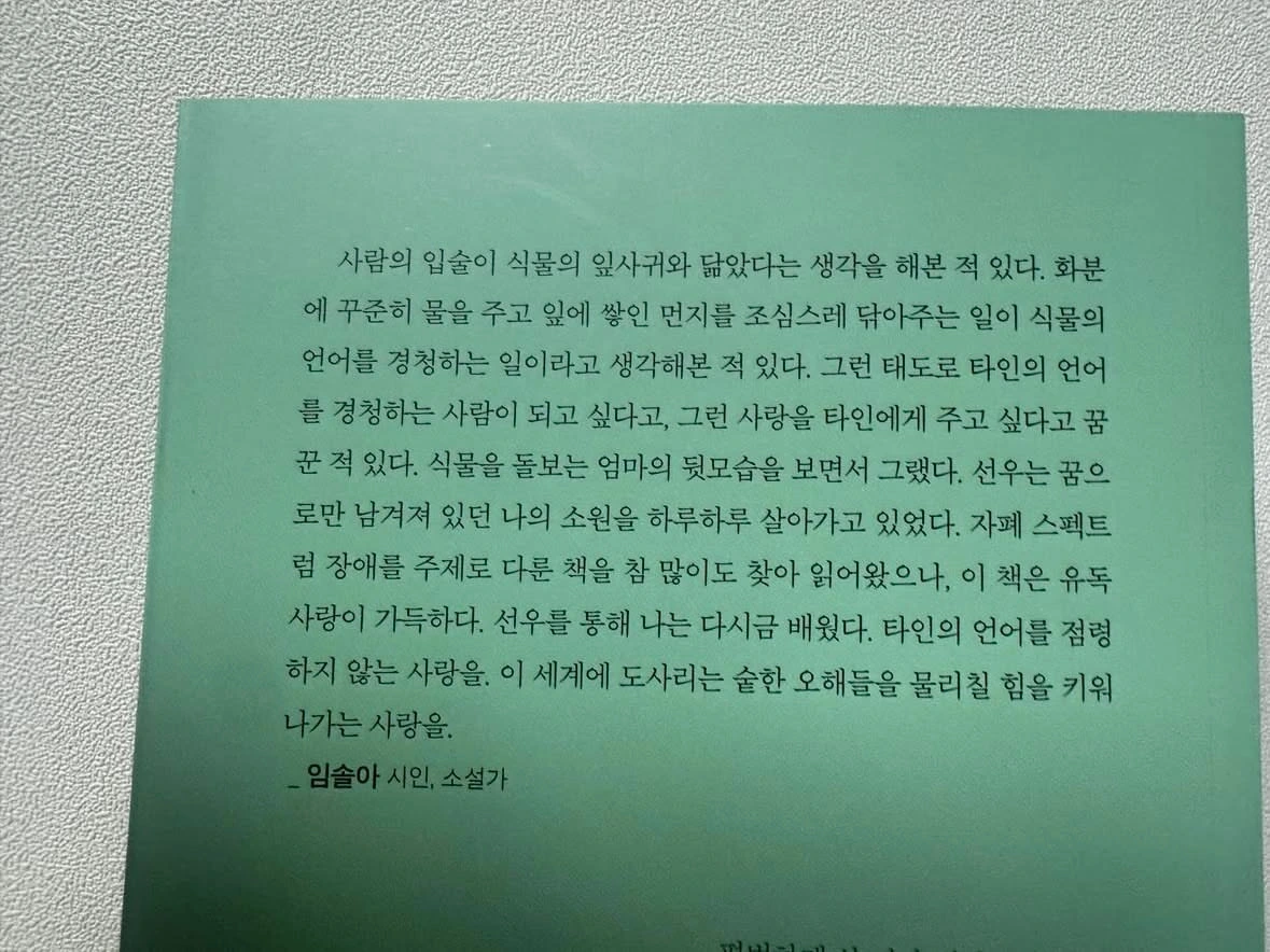 ... 장애가 있는 아이를 돌보며 살고 있는 ‘엄마’라는 존재를 다각도로 말하는 것도 값진 일이 아닌가 하며 선우님의 원고에 설득이 되어버렸습니다. 무엇보다 그 심정이 왠지 너무 잘 이해가 되었어요. 원고를 읽으며 이런 방식으로 설득이 되는 건 참 드문 경우라고 저는 생각해요. 저는 이대로 가도 좋을 듯합니다.