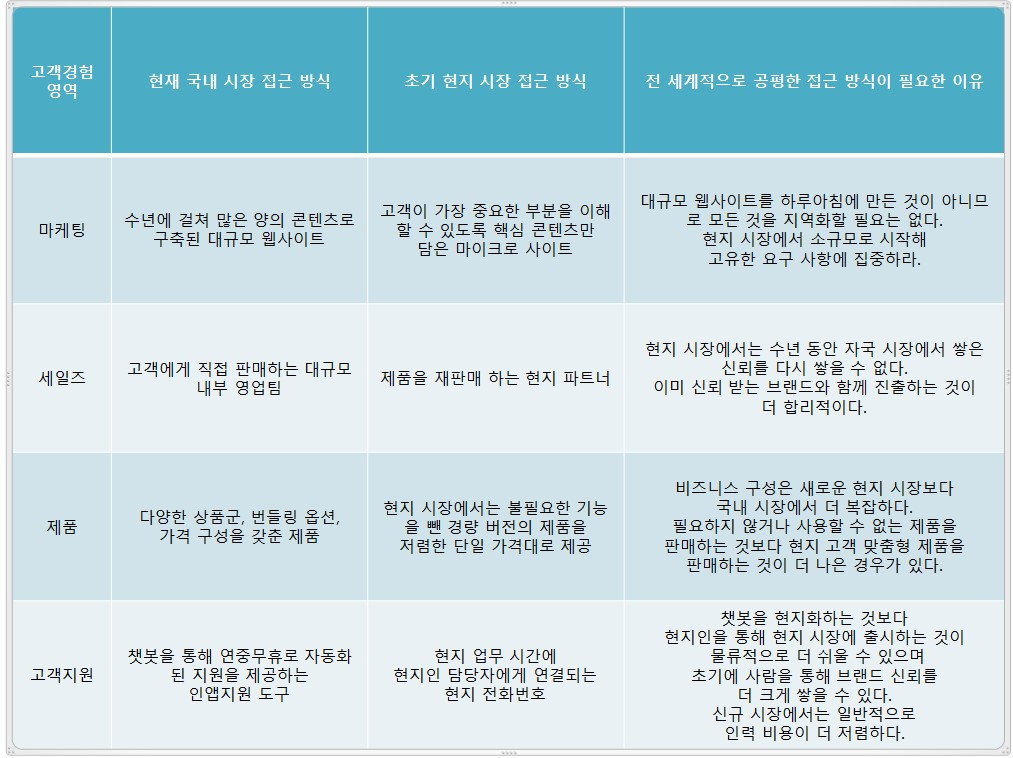 디지털 시대에는 지역에 따라 고객 경험을 조정하지 않아도 글로벌 진출을 하기가 쉽다. 그러나 기업이 충분한 차별화를 하지 못하면 현지 고객과 진정한 관계를 구축할 기회를 놓치게 된다.