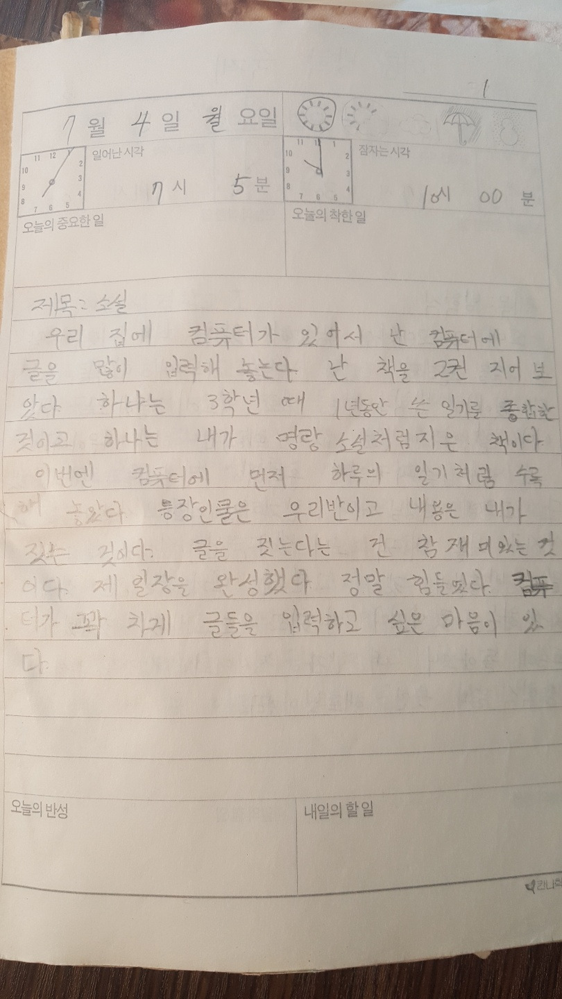 형들이 집을 비운 틈을 타서 열심히 타자연습을 하고, 창작한 '명랑 소설'을 타닥타닥 소리를 내가며 써내려가던 네 모습이 어렴풋하게 기억이 나는구나. 비록 그 소설을 읽은 사람은 너 밖에 없었지만 말이야.