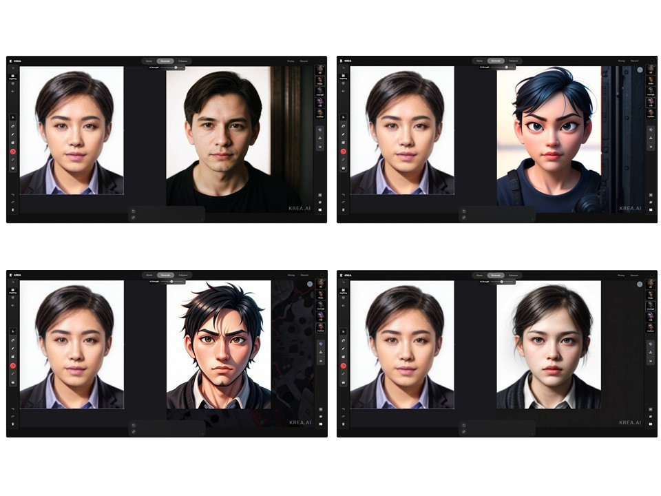 눈치채셨을 독자가 있을지도 모르겠다. 내 프로필의 사진은 내가 아니다. 나의 여권사진 이미지를 가지고 아래와 같은 형식으로 만든 가상의 인물이다. 하나의 인물에 대해 아래와 같이 원하는 형태로 가상의 인물, 이미지를 생성할 수 있다. 활용 방법은 무궁무진하다.