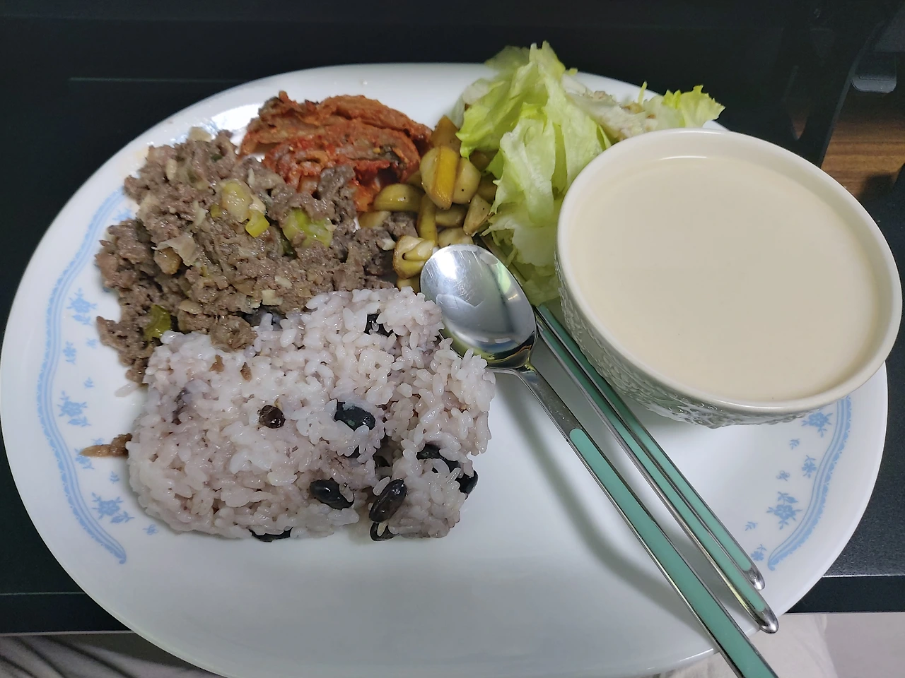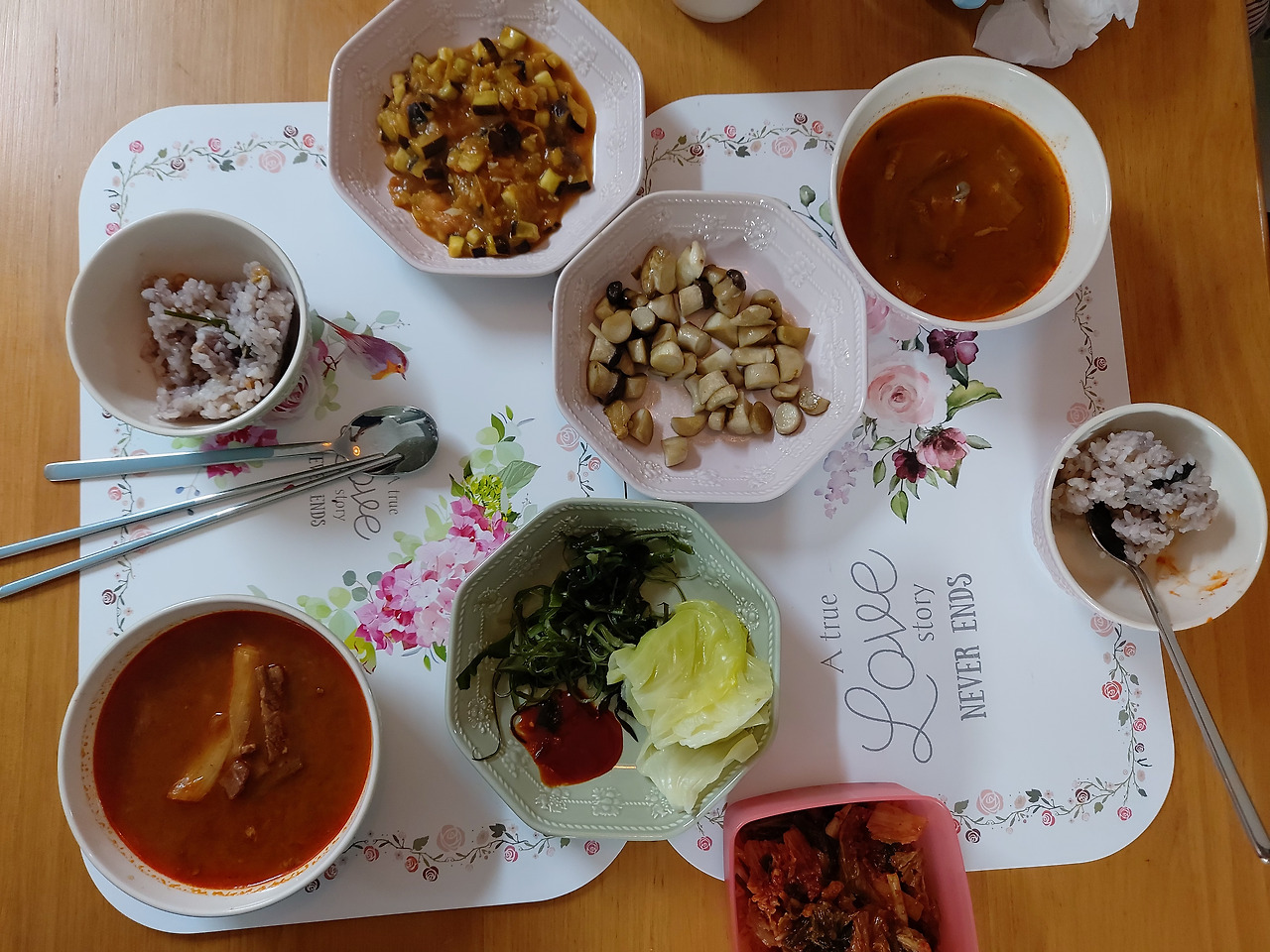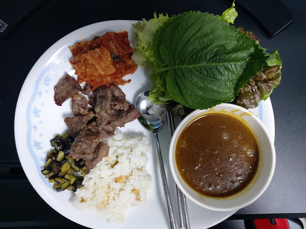 냉동 소분해둔 코스트코 불고기와 된장찌개를 해동했다. 양상추를 대충 뜯고 전날 와이프가 무쳐둔 콩나물과 김치를 더해 한상을 차렸다.