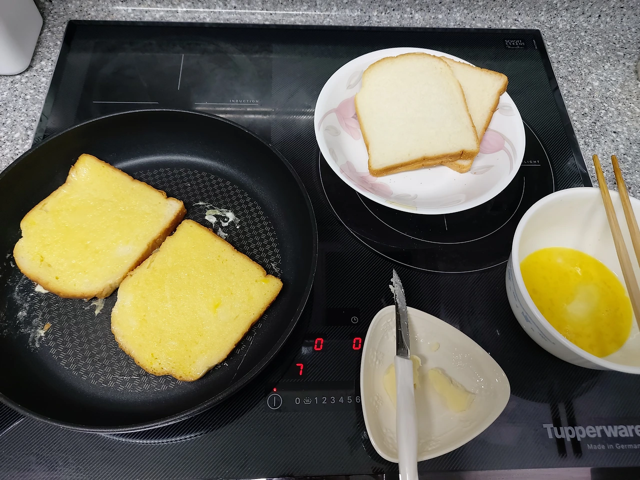 얼린 식빵은 전자레인지에 살짝 데워주면 굽기에 좋다