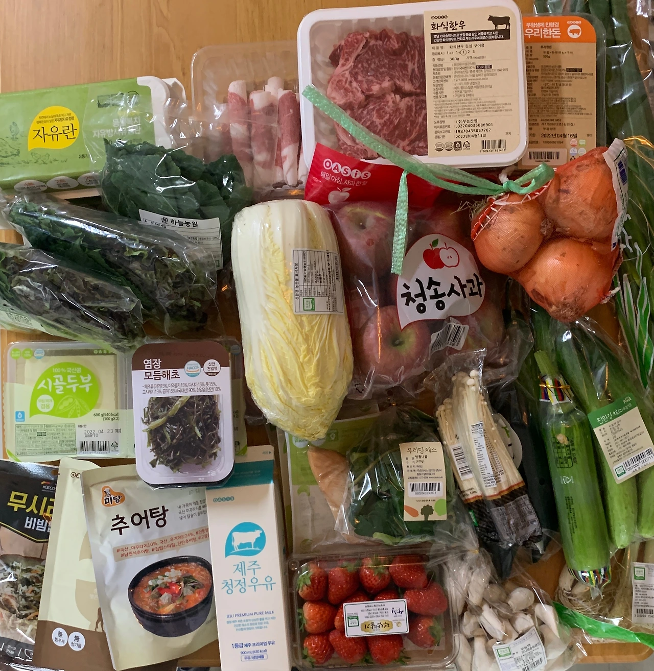 지난 금요일 오후, 와이프가 코로나 확진 판정을 받았다. 전날 목이 따갑다길래 혹시나 했는데, 확진자가 급격하게 늘어나는 추세를 피할 순 없었다보다. 주말 간 외식도 불가하니 와이프가 오아시스 마켓에서 고기, 야채, 간편식 등 비상식량을 주문했다.집에 갇혀있는 동안 요리 연습도 해볼 겸 평소 먹고 싶던 재료를 부탁했다.