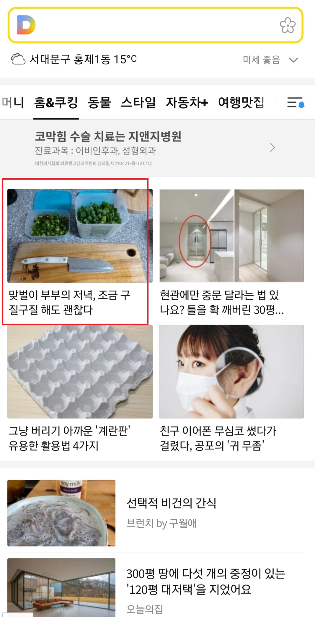 무슨 일인가 찾다 보니 예상치 못하게 다음 포털사이트의 홈&쿠킹 메인으로 떴다는 것을 알게 되었다. 내 글이 뭐라고 메인에 뜬 걸까. 특별한 노하우도 아니고 그냥 맞벌이 부부의 현실적인 저녁상에 대한 단상이었을 뿐인데.