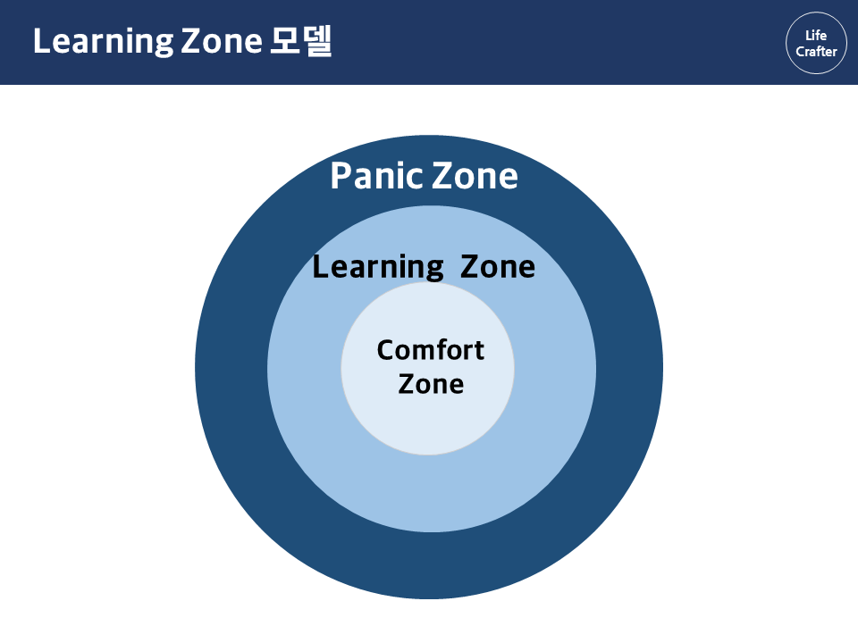 여기서 핵심은 기존의 Comfort Zone을 벗어나서 도전하되 Panic Zone으로 빠지지 않고 학습이 가능한 Learning Zone을 확대해가는 것이다.