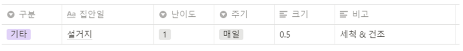 설거지를 다했다고 끝난 게 아니다. 세척 후 건조한 다음 제자리에 두는 것까지가 설거지의 종결이기 때문이다. 완전히 건조하는 데까지 최소 3시간이 걸린다.따라서 저녁에 설거지를 하고 그다음 날 자연 건조가 된 것을 수납하면 효과적이다. 주말에는 나눠서 한다는 1원칙과 결합하여 오전, 오후, 저녁 등으로 나눠서 하면 세척-건조-수납의 사이클이 유지된다.