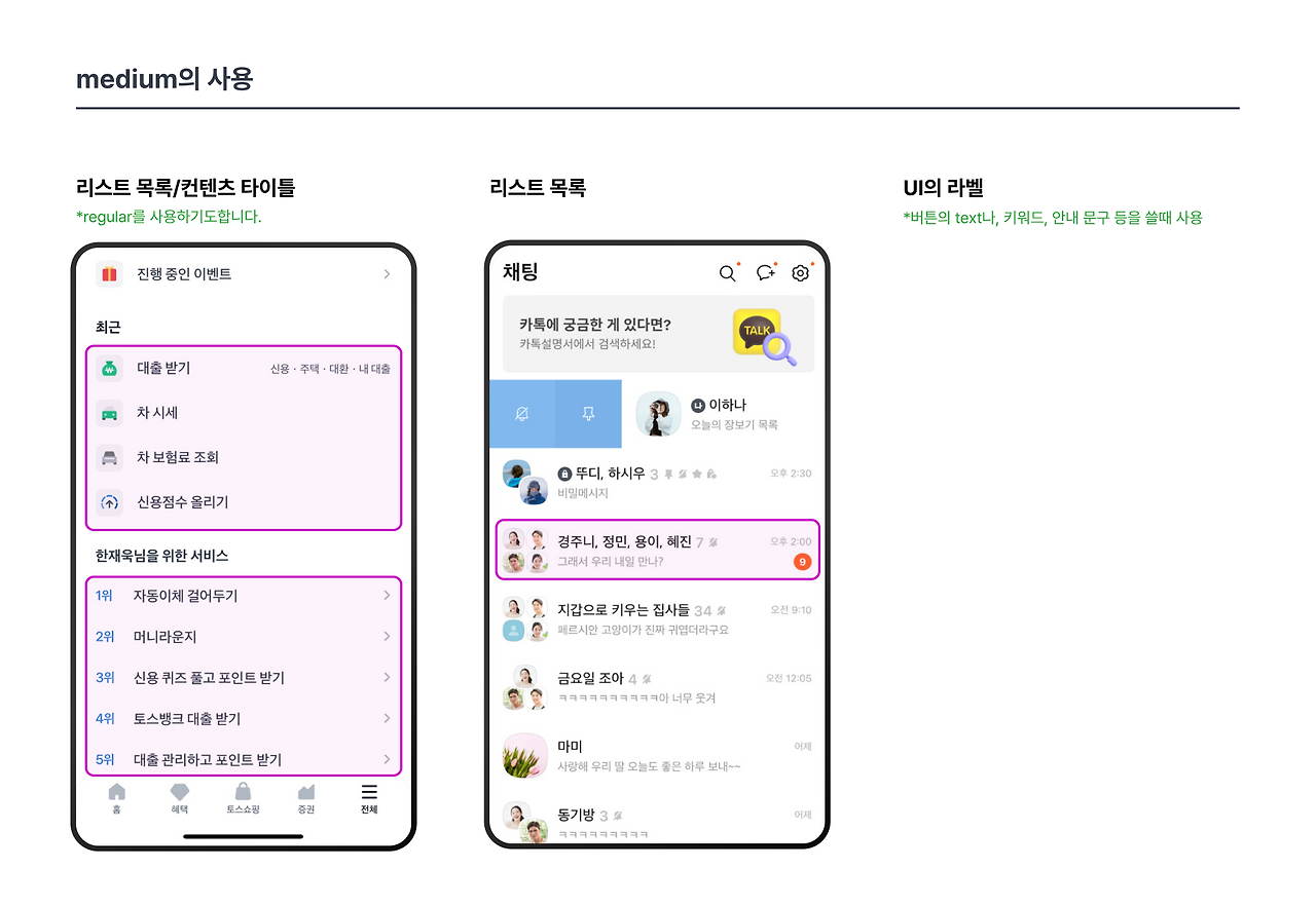 semibold 체는 주로 콘텐츠 타이틀이나 버튼 UI, 리스트 목록에 씁니다.