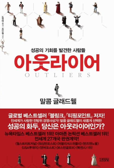 슈퍼스타 변호사와 수학 천재, 소프트웨어 기업가는 얼핏 우리의 일상적인 경험에서 벗어난 존재처럼 보인다. 하지만 그렇지 않다. 그들은 역사와 공동체, 기회, 유산의 산물이다. 그들의 성공은 예외적인 것도 신비로운 것도 아니다. 그들의 성공은 물려받거나, 자신들이 성취했거나 혹은 순전히 운이 좋아 손에 넣게 된 장점 및 유산의 거미줄 위에 놓여 있다. 이 모든 것은 그들을 성공인으로 만들어내는 데 결정적인 요소였다. 아웃라이어는 결국, 아웃라이어가 아닌 것이다.