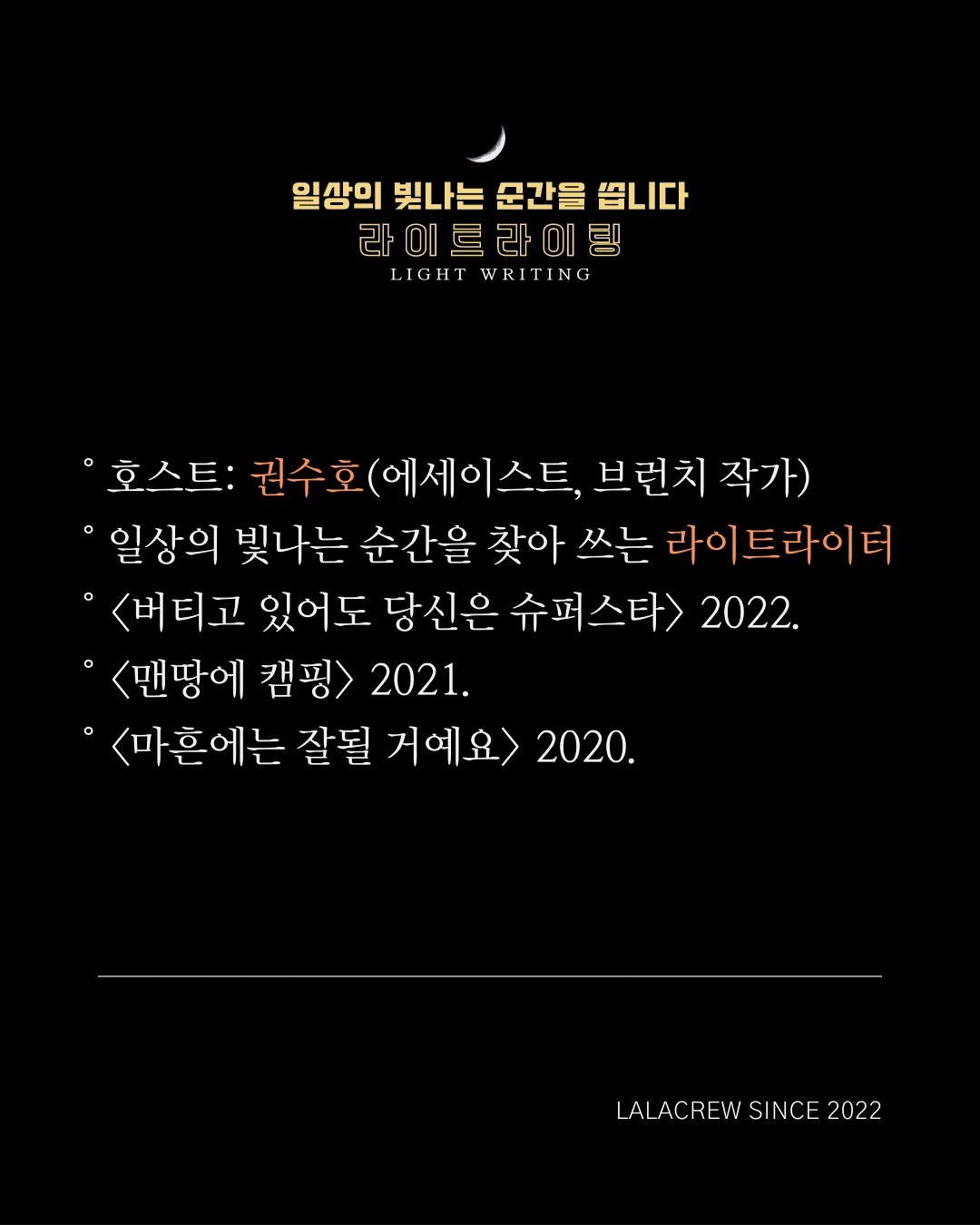 인생 축제 탐험가. 본캐는 간호사지만 알고 보면 감정을 나열하는 데에 꽤 재주가 있는 비공인 감정 전문가다. 은근히 철딱서니가 없으나 적당히 감출 줄 아는 분별력을 갖추고 있다.