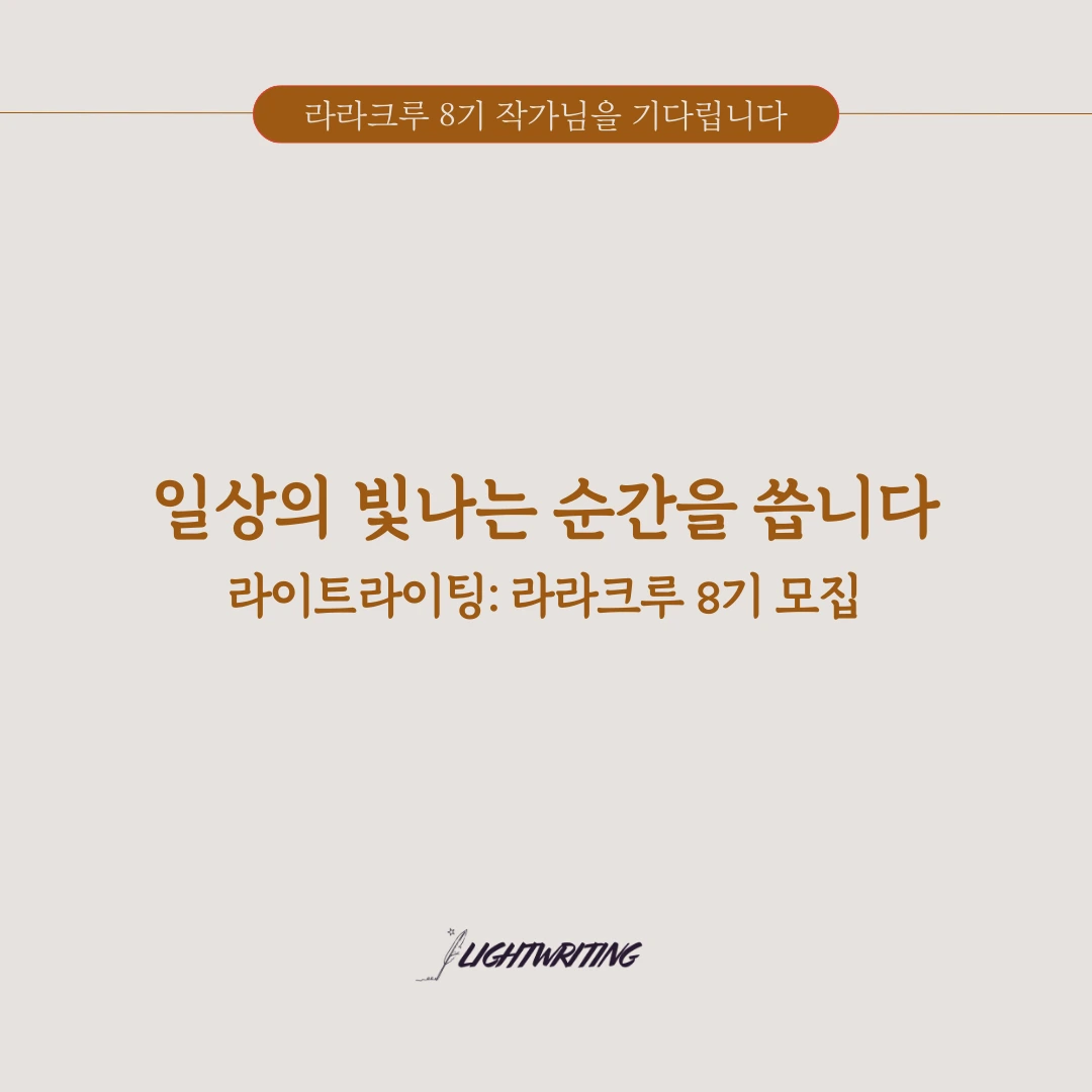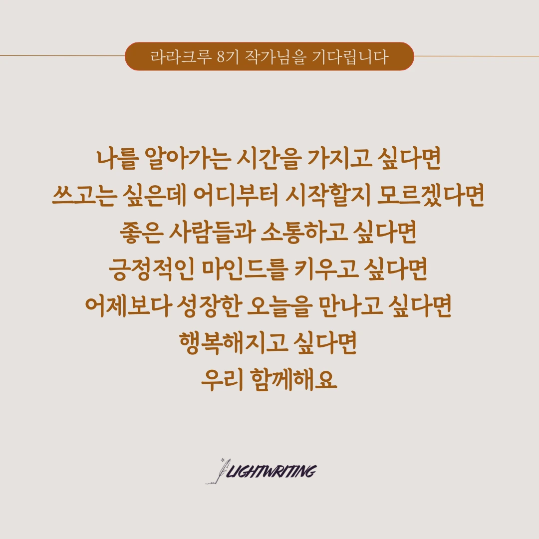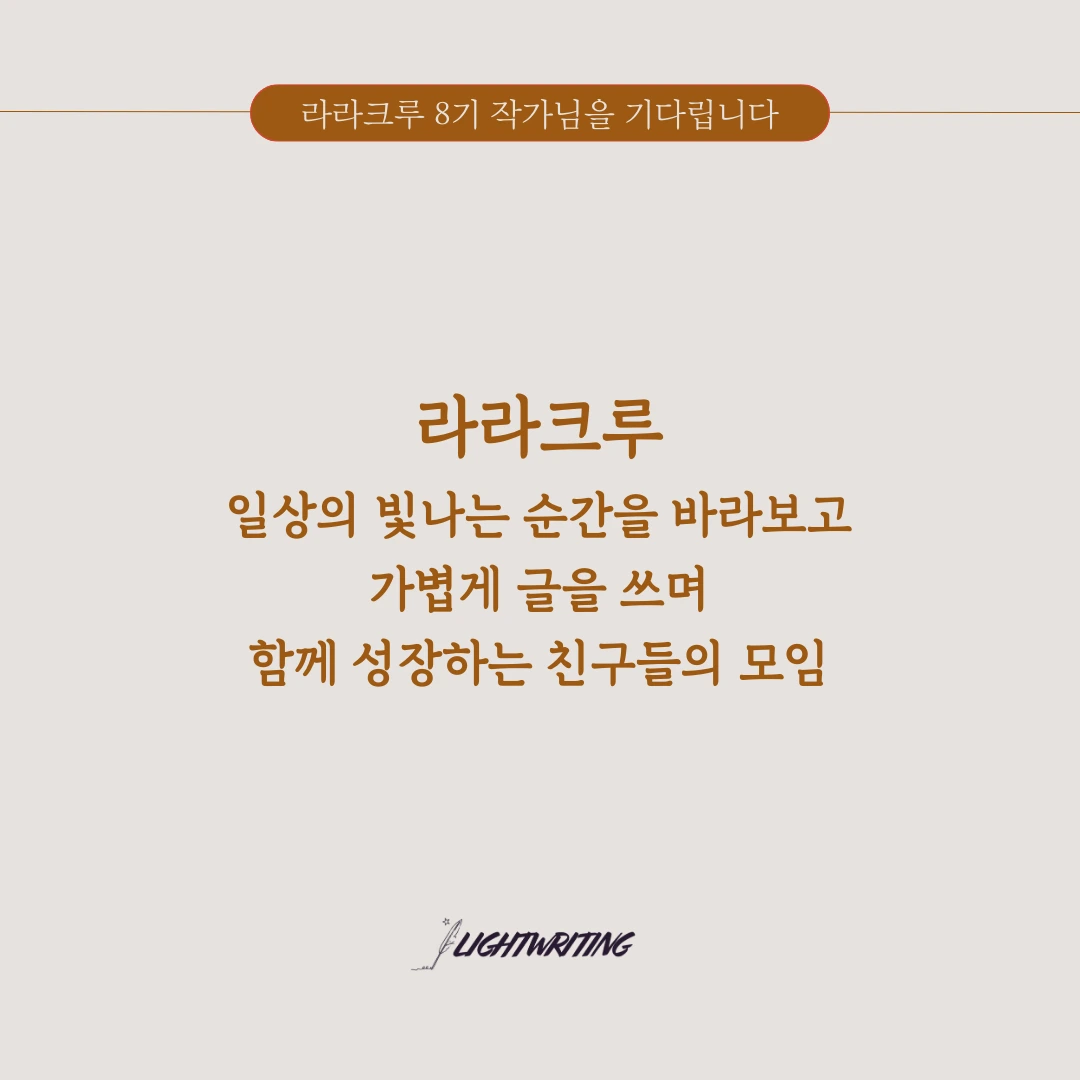 <라이트라이팅: 라라크루>에서 지금 8기 작가님을 모집합니다.^^