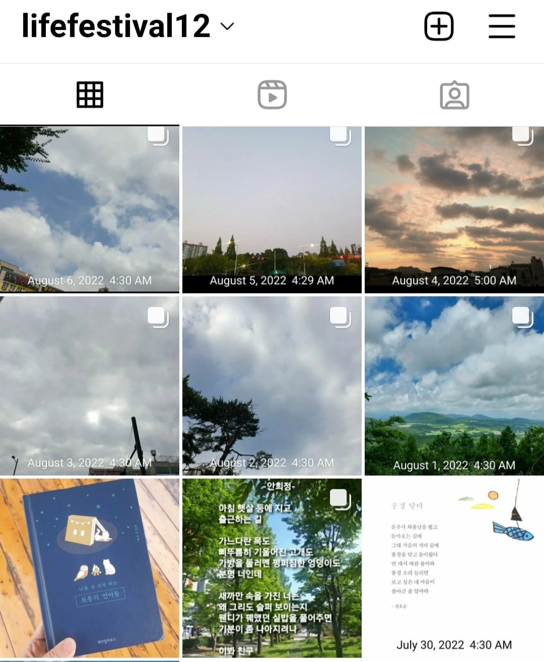 궁리 끝에 인스타에 새벽 기상 타임 스탬프 사진의 테마를 '하늘'로 정하고 사진을 찍어서 매일 올리기로 했다.